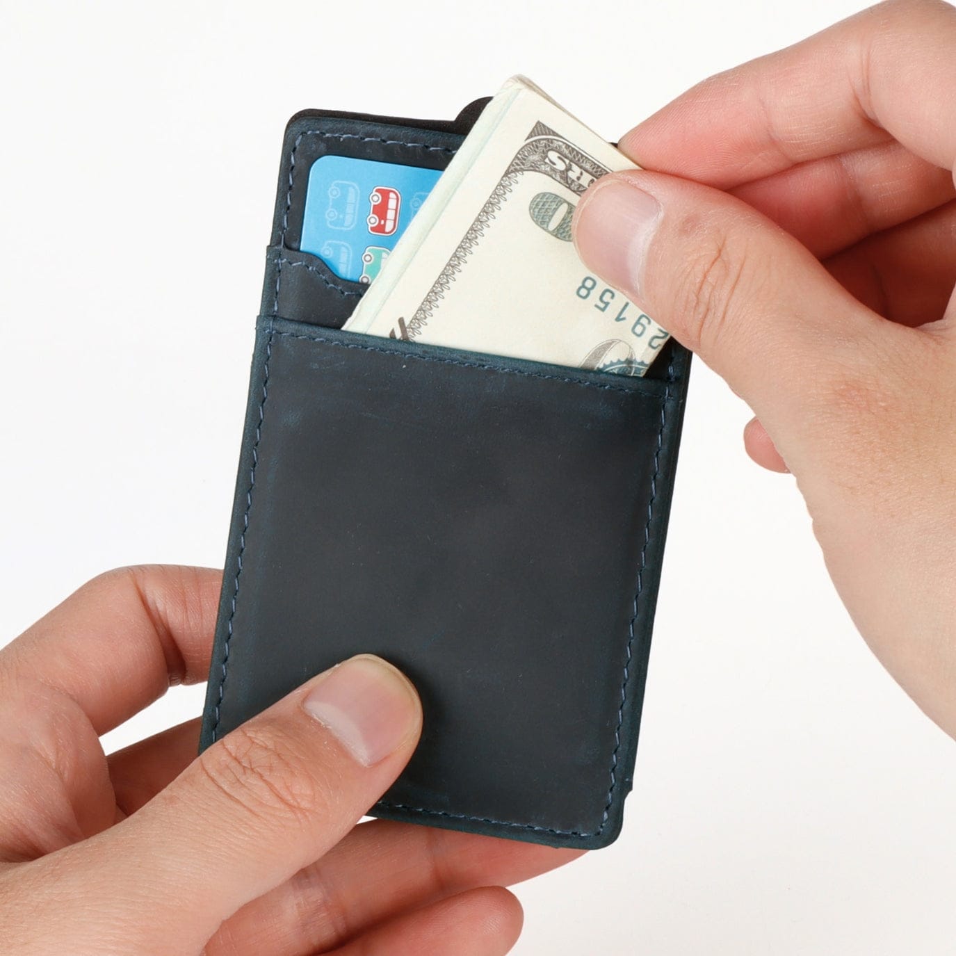 Compatible with Double Oak Essentials card holder, a game-changer in slim wallets, holds 7 cards flat – one more than traditional pop-up card holders. Customize your style and simplify your carry by effortlessly detaching the card holder. Interchange colors with different top-grain leather and card holder options for a truly personalized experience.